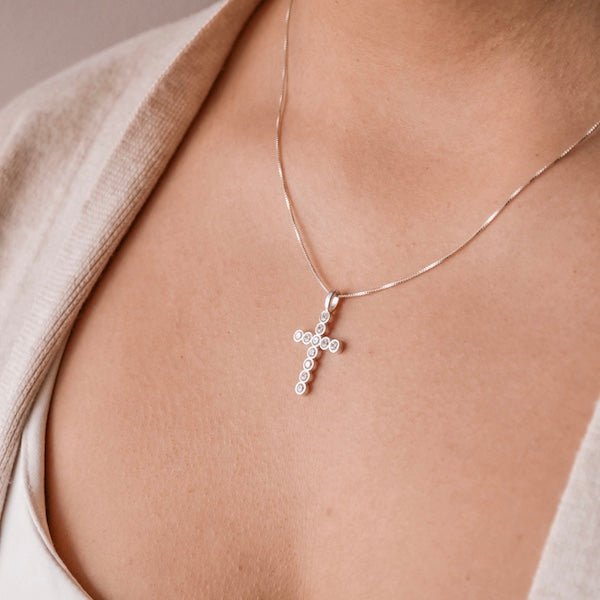 • Collar Cruz Plata y Circones Redondos - Unicus Joyas