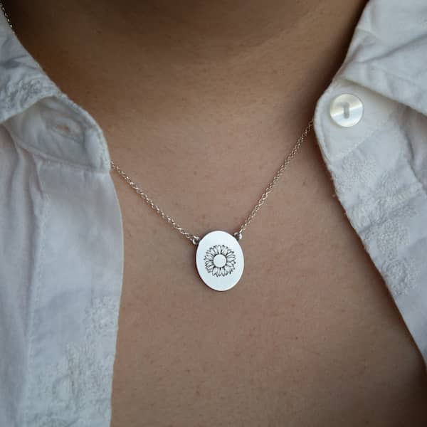 Colgante Ovalado de Plata 950 con grabado láser bajo relieve en ambas caras