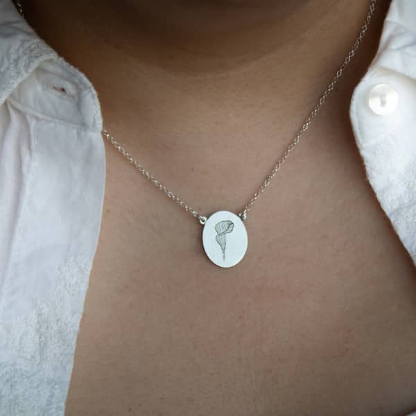 Colgante Ovalado de Plata 950 con grabado láser bajo relieve en ambas caras
