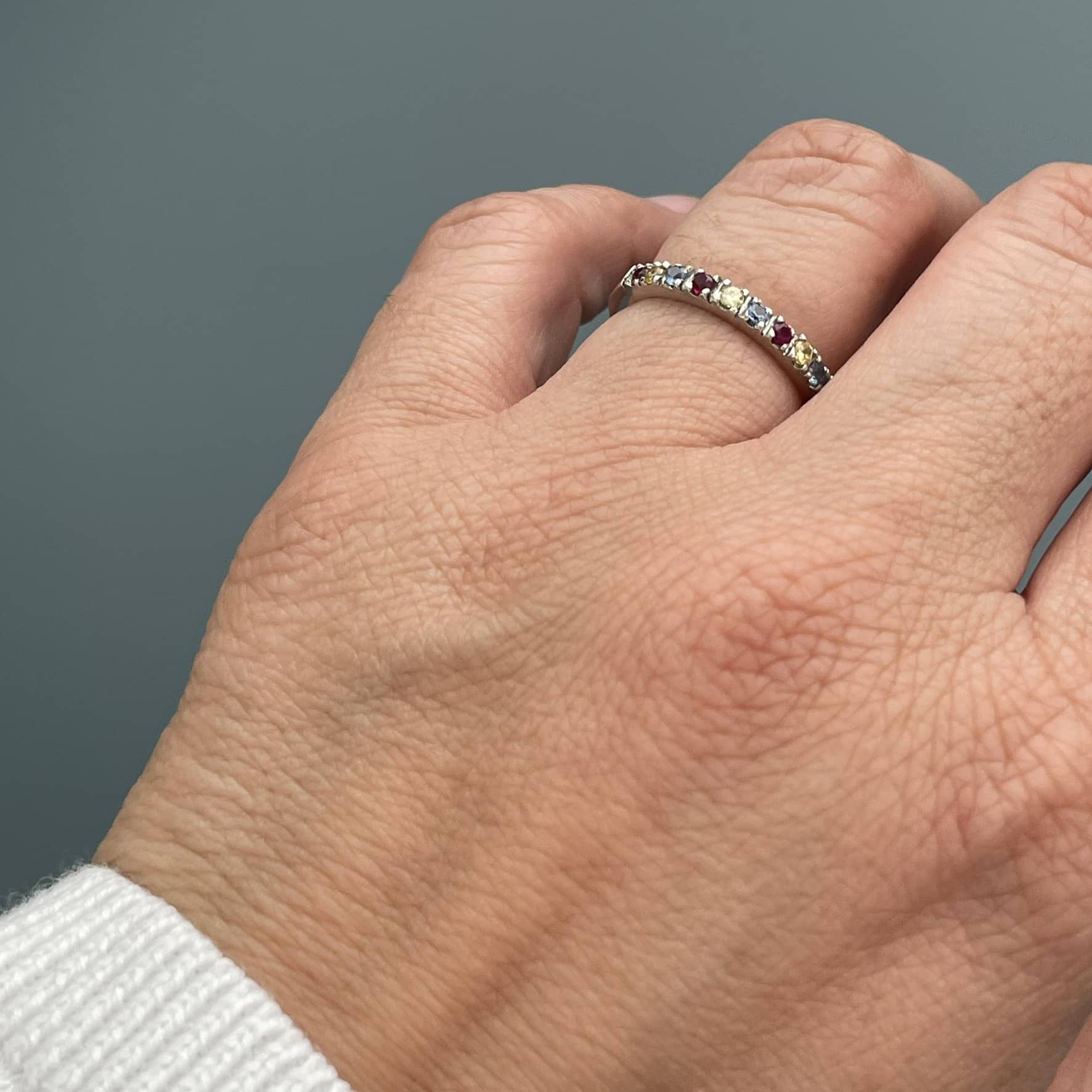 Es un anillo que se puede llevar sólo como también acompañado de otros anillos al más estilo de los anillos apilables.
